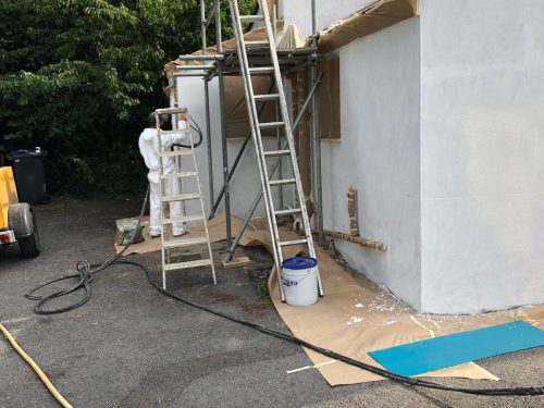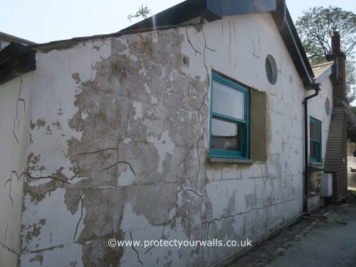 The exterior of this property was in quite poor condition and the owners wanted to revitalise it with a product that would give them less regular maintenance than normal paint. All loose paint was stripped off the walls, cracks were ground open and filled with Epoxy and loose render was hacked off and repaired. We then spray applied a resin coating system to help hide all the repairs that were required and provide an attractive long lasting finish.