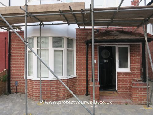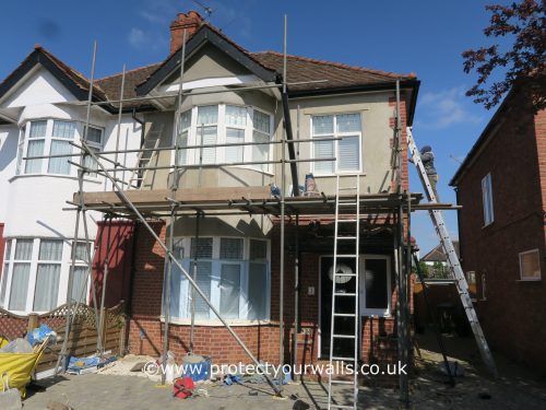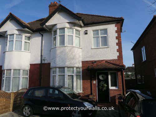 The owners of this property didn’t like the pebbledash render and the front elevation was beginning to look very tired. After all the necessary repairs were carried out we rendered over the pebbledash with a GRC render to flatten the surface. We then applied a resin coating to provide an attractive long lasting finish. The brickwork on the lower half was also in quite a poor state so we ground out all the old pointing and fully re-pointed. We also tried to clean up the bricks as best we could with some cleaning solutions.