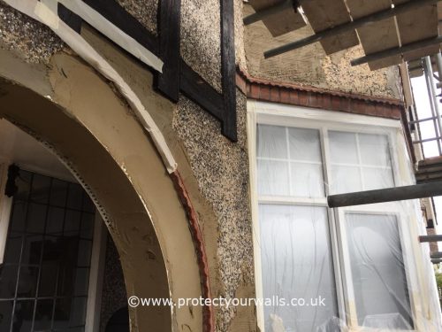 The owners of this property wanted us to update the exterior of the property. Most of the render was soundly adhered but there were some sections that were blown and needed to be hacked off. Once repairs were complete we applied a GRC render to flatten out the textured surface. A mesh was embedded within the GRC render to increase strength and crack resistance. A resin coating was then applied to provide an attractive long lasting finish.