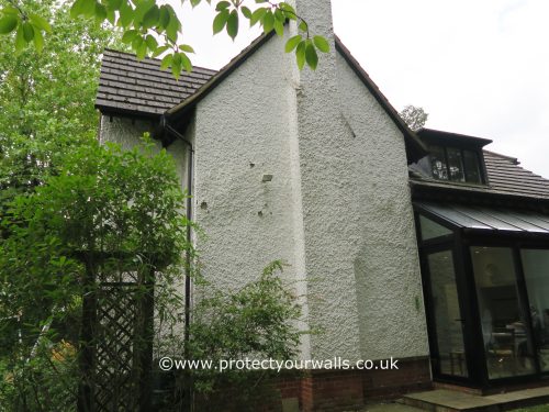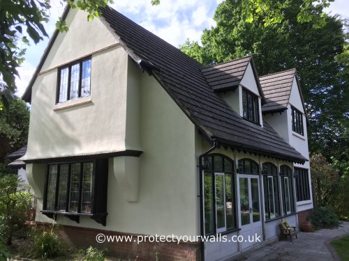 The render on this house was in quite poor condition and required extensive repair work. We hacked off all the loose render and re-rendered in keeping with the original surface finish. Once all the repair work was completed we applied a long life coating system to help blend in all the repairs and provide an attractive finish.